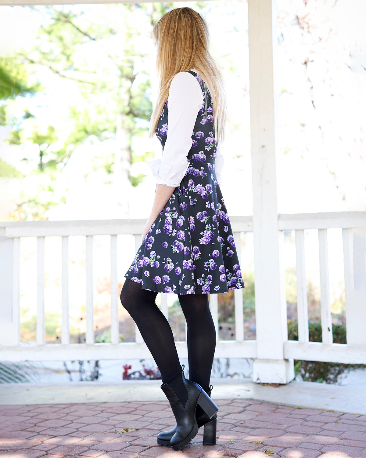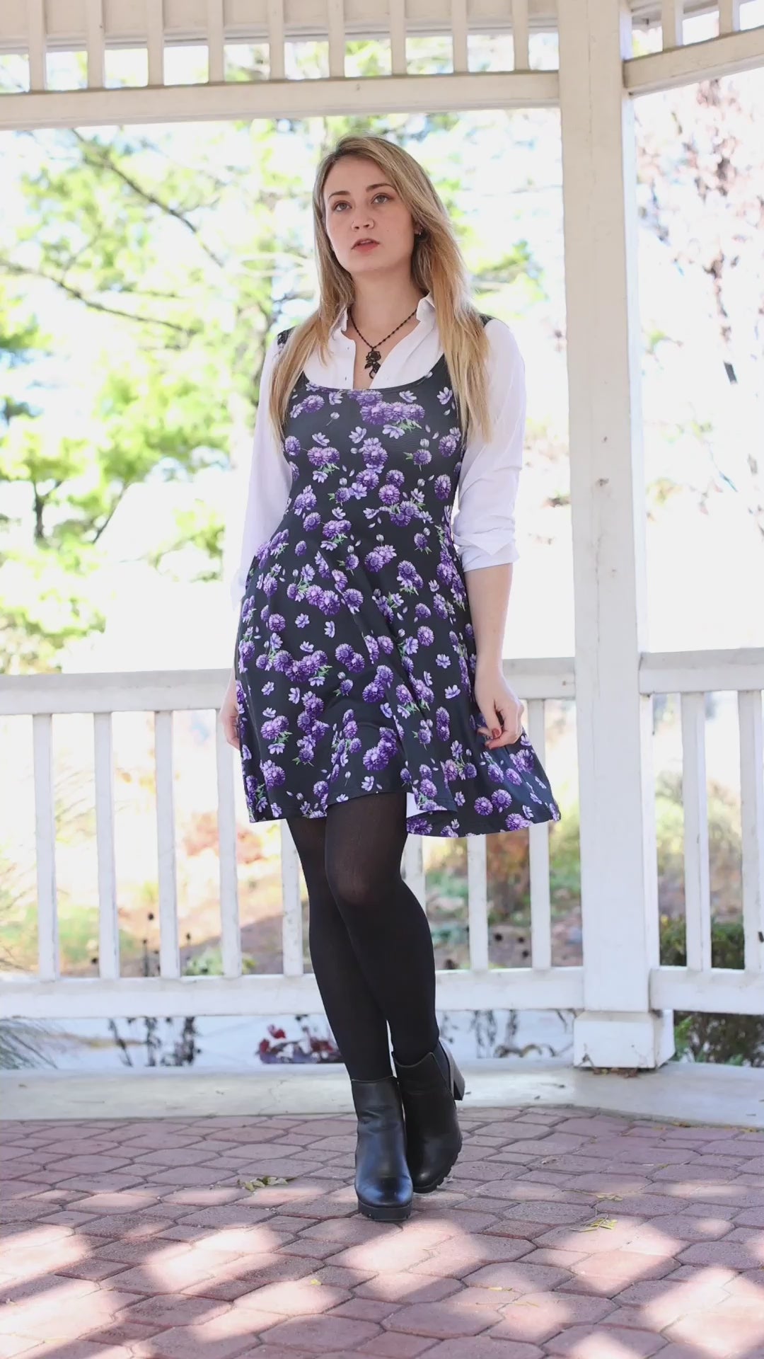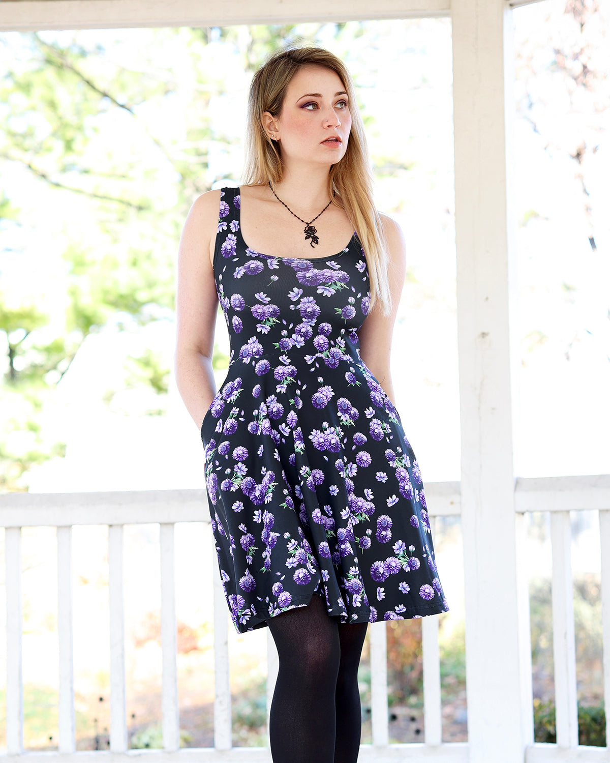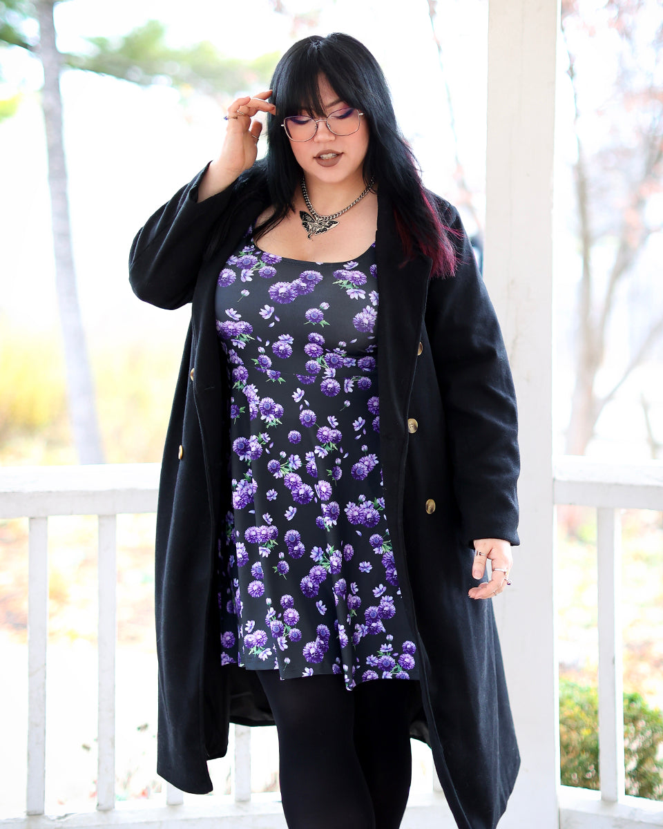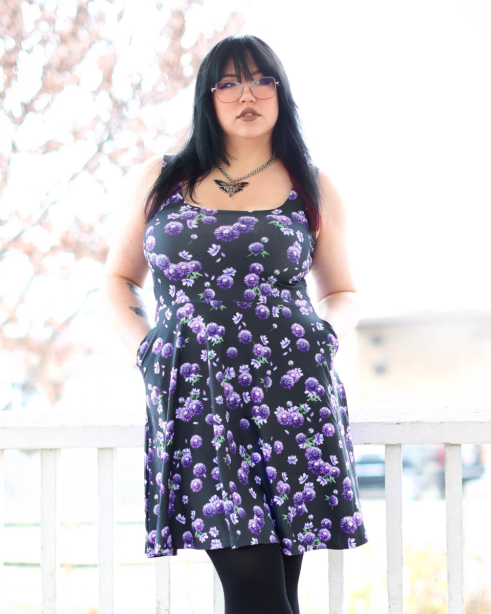 The Dahlia Pocket Skater Dress features original artwork by Jamie Koala.