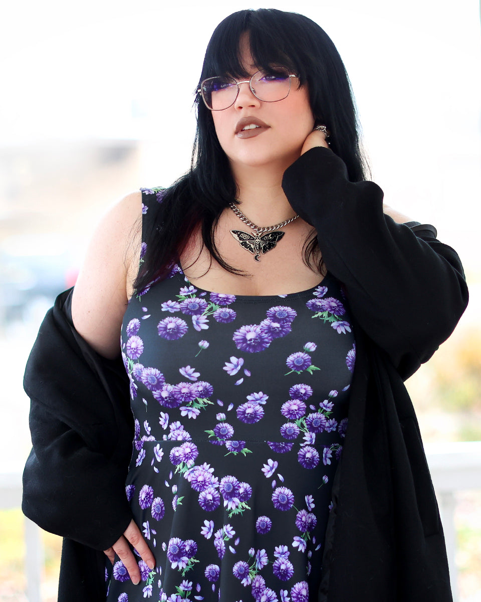 Dahlia Skull Pocket Skater Dress